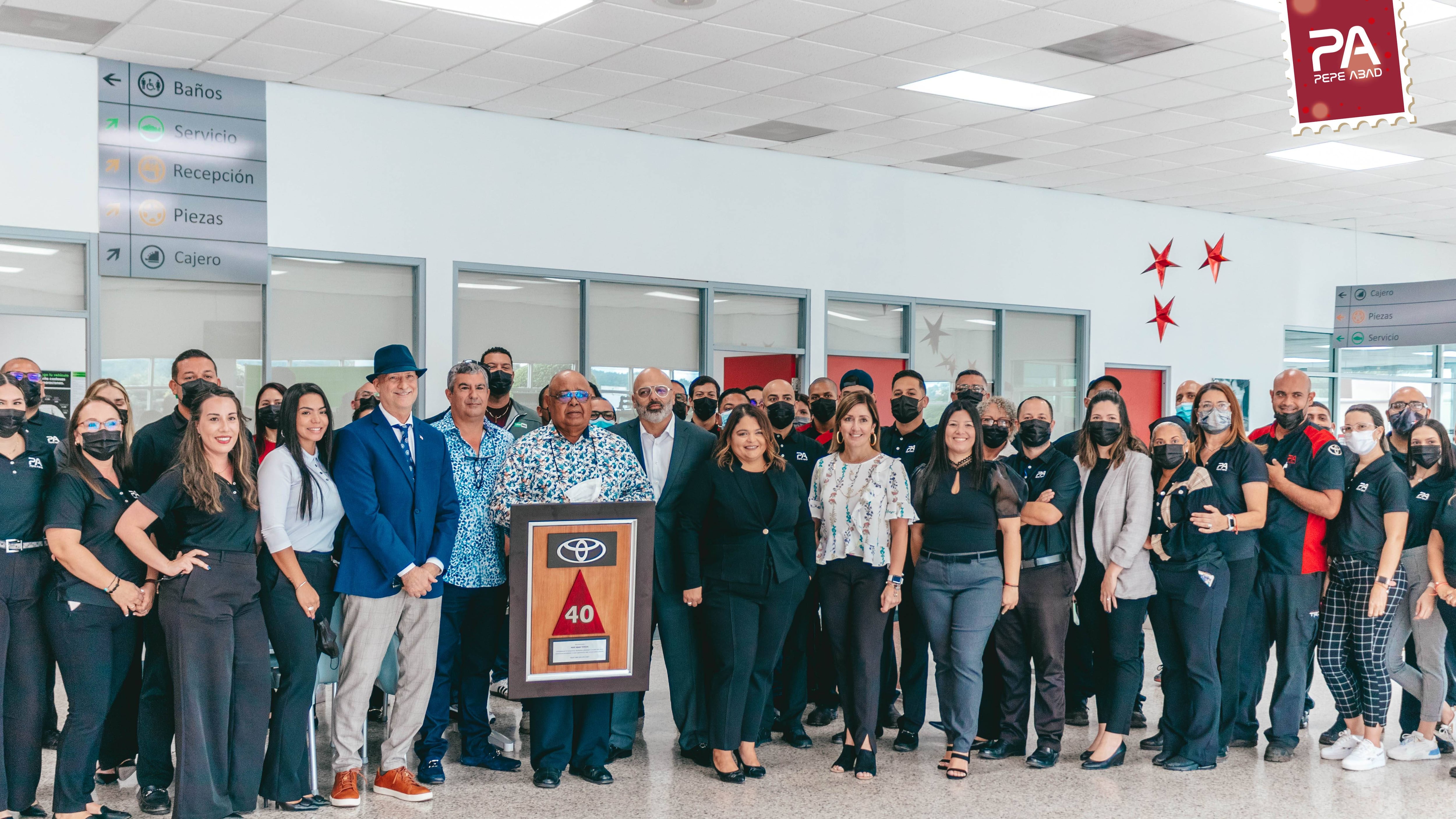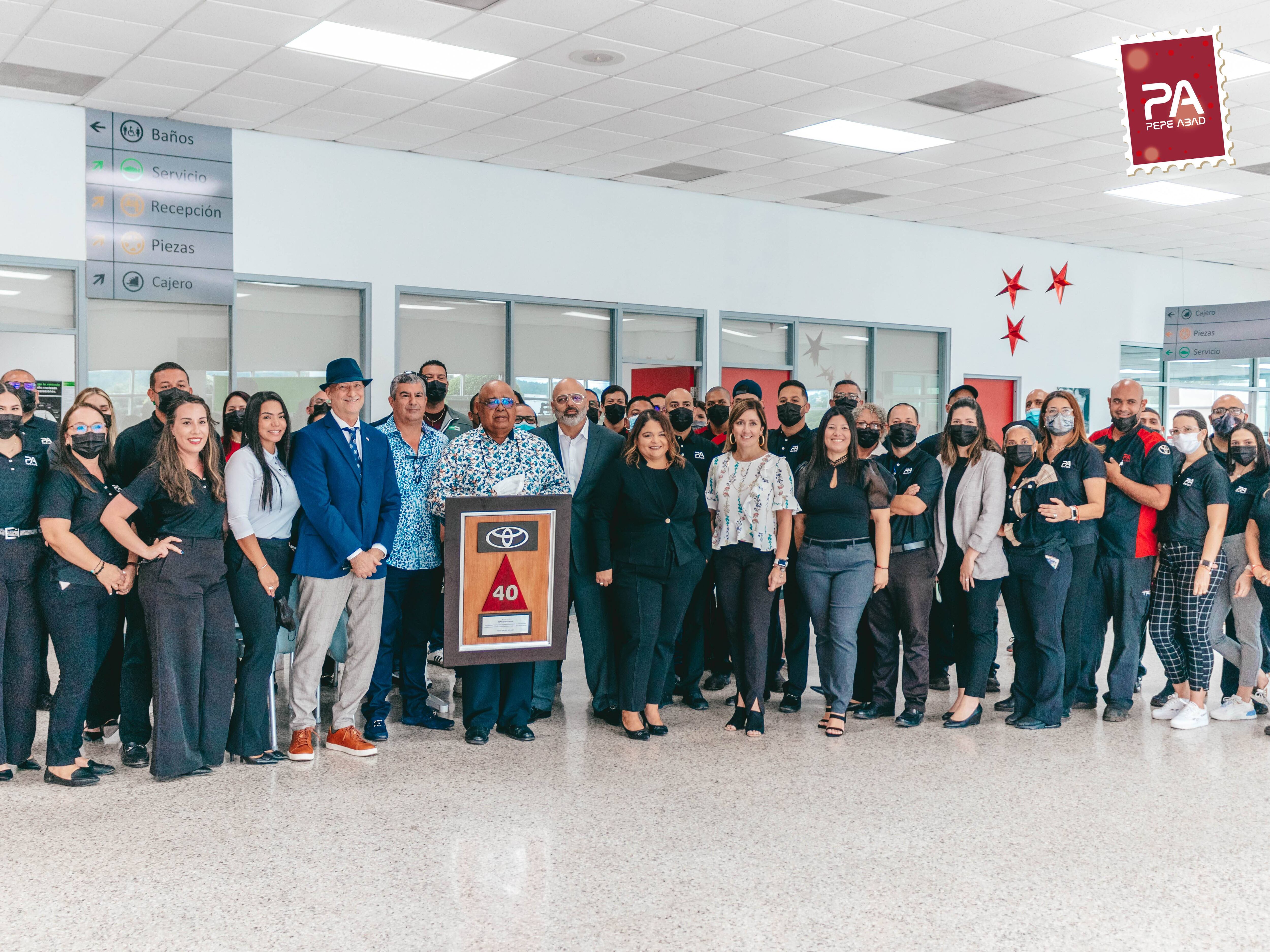 (miércoles, 10 de noviembre; Cayey, Puerto Rico) – La gran familia de Pepe Abad Toyota se enorgulleció en recibir la visita de Toyota de Puerto Rico al hacerle un reconocimiento especial por los 40 años de servicio que ha ofrecido su concesionario de la mano de Toyota, marca líder en el mercado automotriz local.