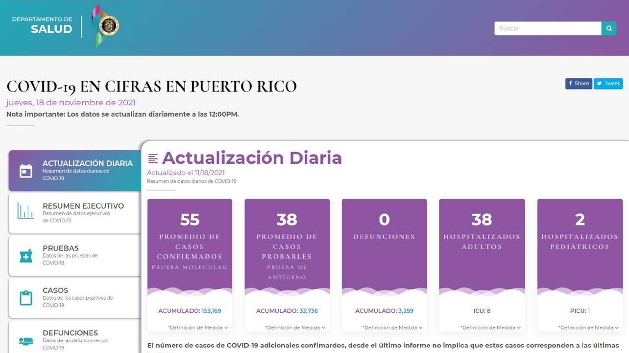 En su informe diario sobre el COVID-19, el Departamento de Salud no registró decesos este jueves a causa del virus.