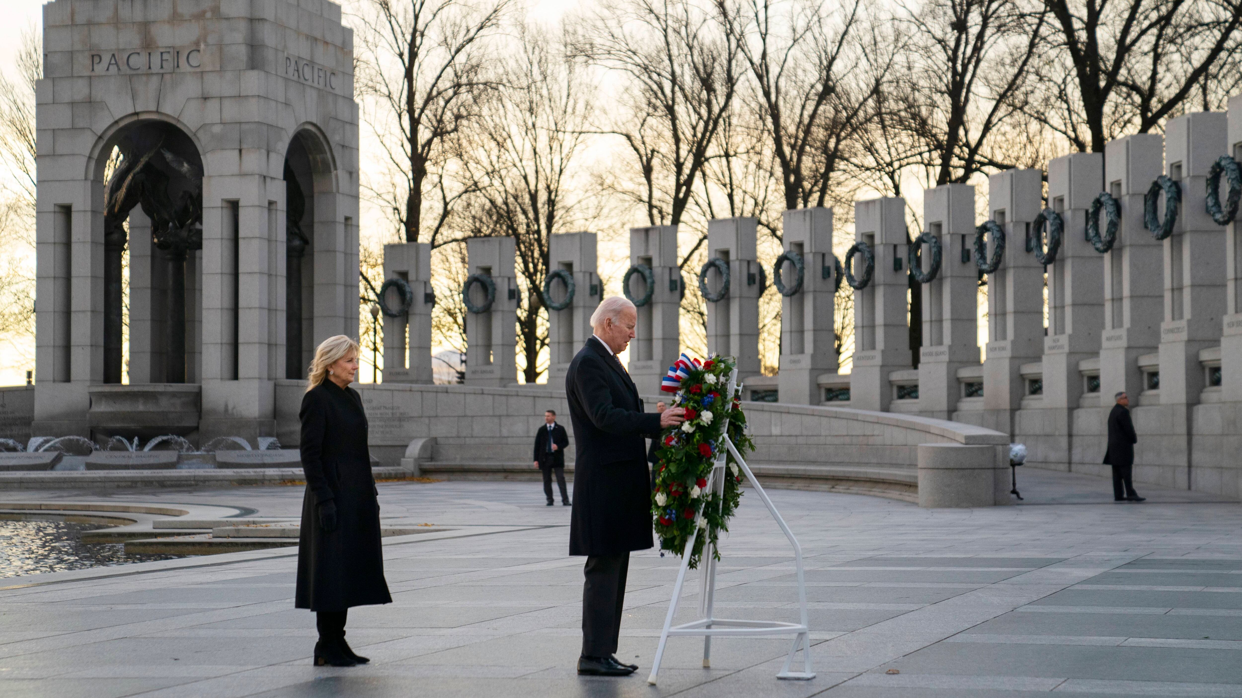 El presidente estadounidense Joe Biden y la primera dama Jill Biden conmemoraron el martes el 80mo aniversario del ataque japonés a Pearl Harbor con una visita al Memorial de la Segunda Guerra Mundial en Washington.