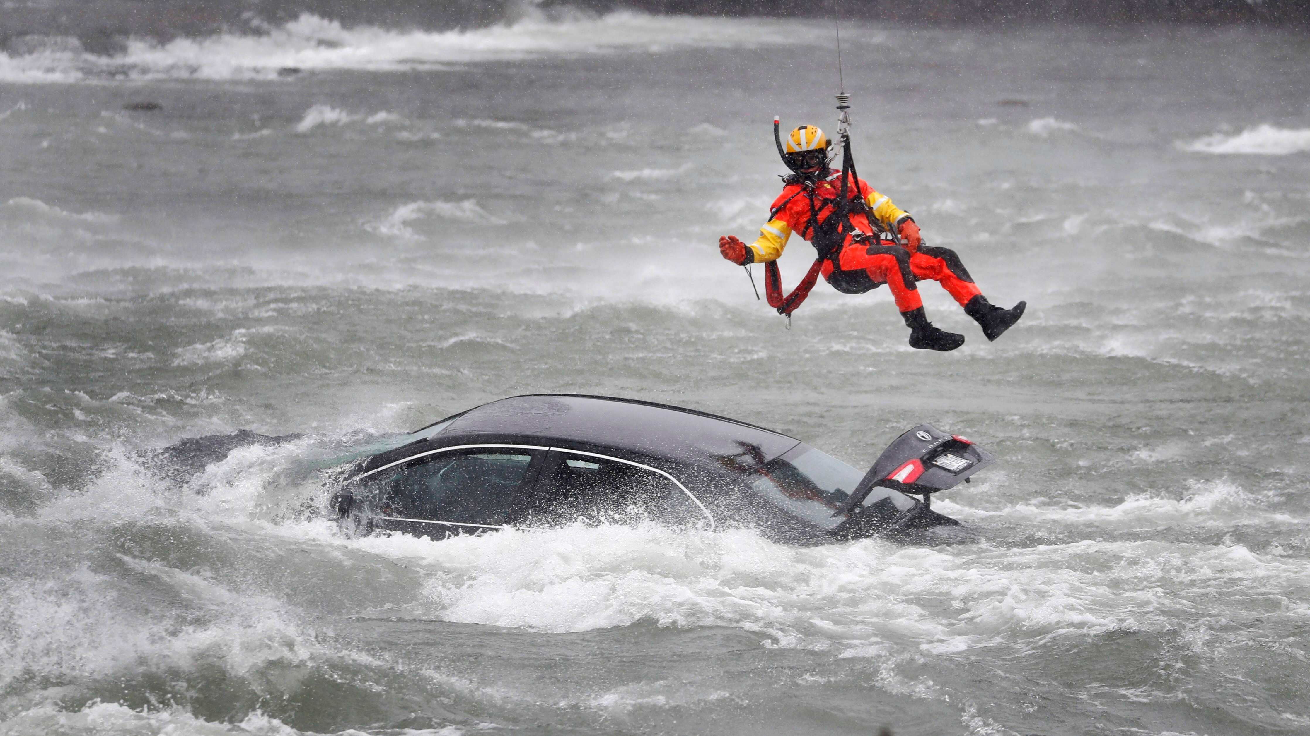 El socorrista se posó en la parte superior del vehículo que estaba casi sumergido entre las corrientes veloces e ingresó por una ventana. La conductora vivía en la zona.