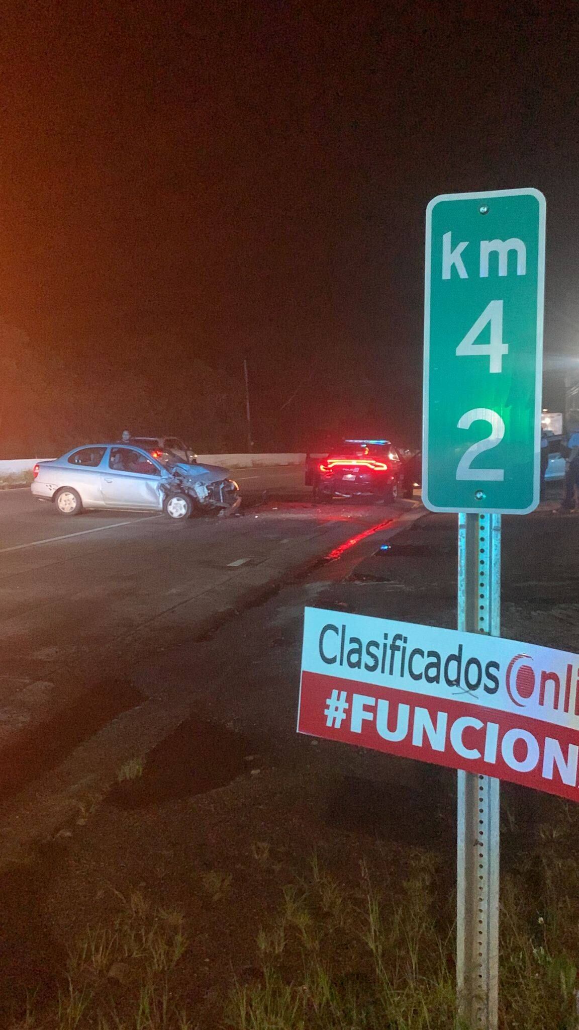 Un accidente de auto con un vehículo oficial de la Policía fue reportado a las 9:40 de anoche en la carretera PR-3, kilómetro 42.0 frente al restaurante Lolitas en Luquillo.