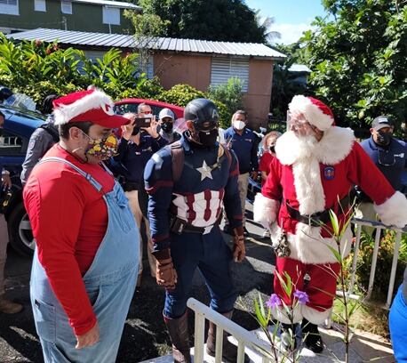 El teniente coronel Israel Vázquez Rivera, comandante del área de Bayamón, acompañado de agentes de la Unidad Motorizada, División de Estadísticas y del Plan Integral, visitaron el Hogar del Niño Ave María, junto a Santa y superhéroes para llevarles alegría, regalos y artículos de primera necesidad.