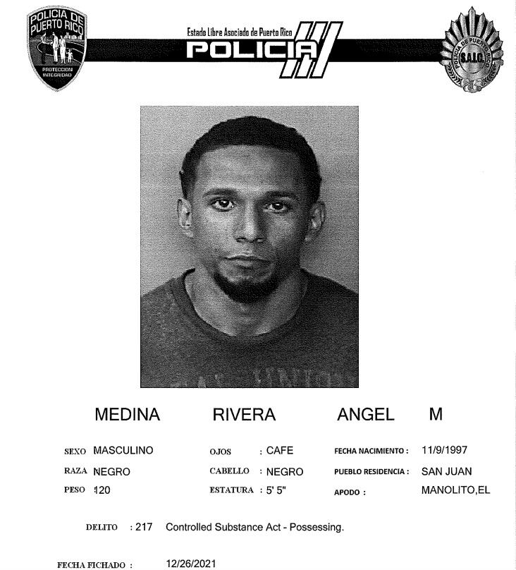 La Policía informó el domingo que en el Tribunal de San Juan, fueron radicados cargos criminales por violaciones a la Ley de Sustancias Controladas, violaciones a la Ley de Armas y por el artículo 249 del Código Penal Riesgo a la seguridad u orden público al disparar un arma de fuego fueron radicados contra Ángel Manuel Medina Rivera, de 24 años y residente de San Juan.