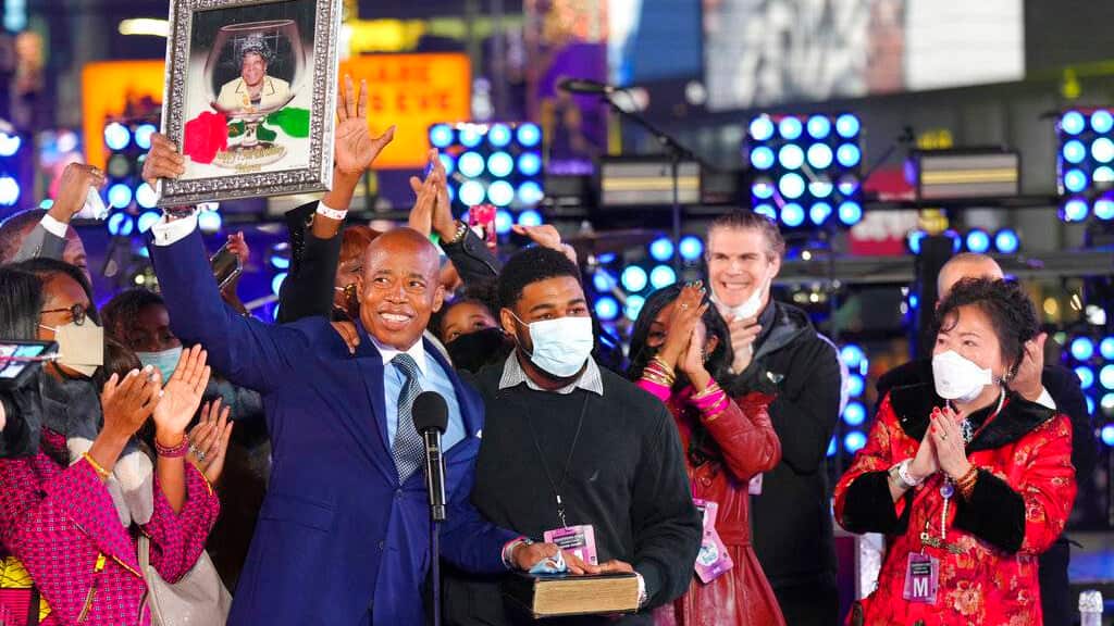 Adams, de 61 años, enfrenta el inmenso reto de sacar a la ciudad de la pandemia. Llega al cargo mientras la ciudad registra una cifra récord de casos de COVID-19 impulsada por la variante ómicron del coronavirus.