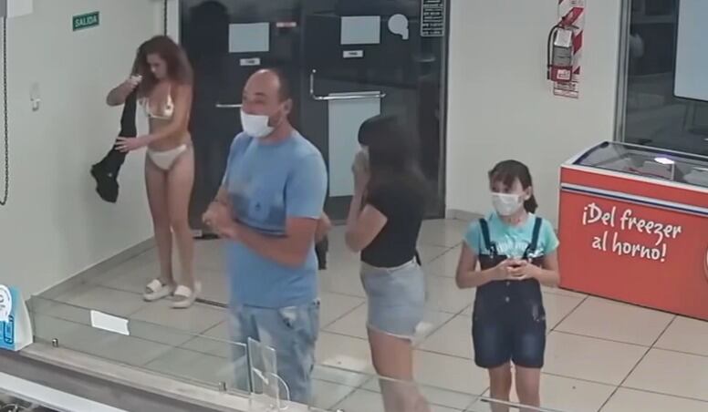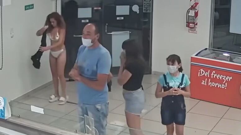 Y ante la negativa de los trabajadores de dejar ingresar a un grupo de 11 personas que no usaban mascarillas, una mujer se sacó su vestido, se cubrió parte del rostro con él y entró en ropa interior al local.