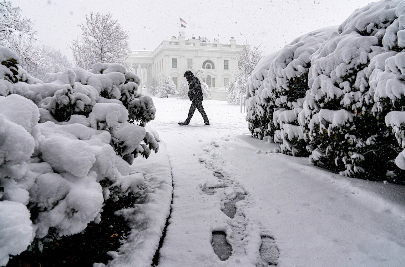 La nieve obligó a mantener en tierra el helicóptero del mandatario, por lo que él viajó en caravana hacia la Casa Blanca desde la Base Conjunta Andrews en Maryland, un avance lento que tomó cerca de una hora. La rueda de prensa en la Casa Blanca fue cancelada, si bien otros eventos públicos de Biden seguían programados.