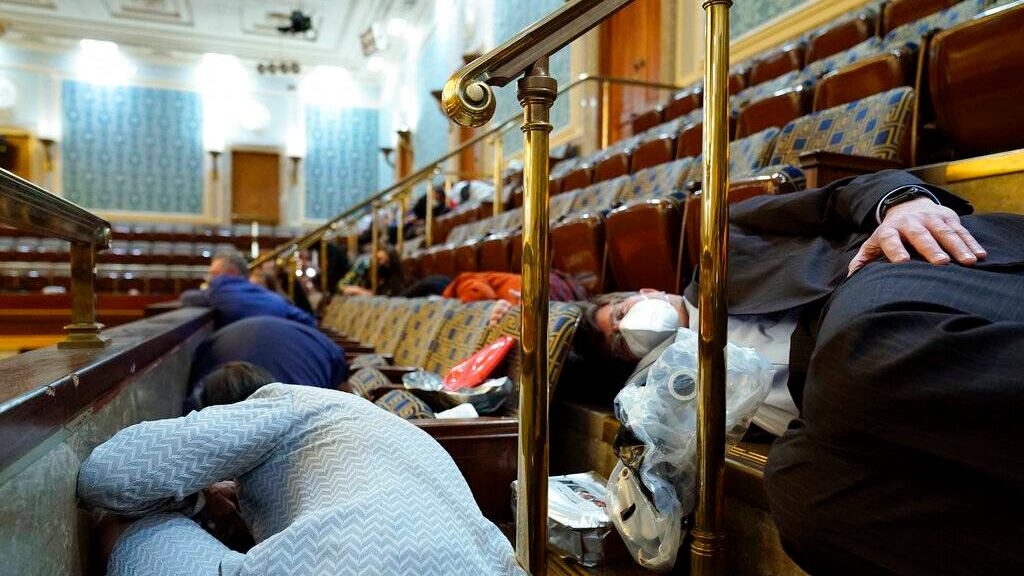 Washington — Bastante después de que la mayoría de los representantes lograsen escapar, unas tres decenas de legisladores y legisladoras seguían tirados en el piso de mármol de los balcones de la sala de sesiones de la cámara baja, que estaban cerrados al público por el brote de COVID-19. Fueron los últimos en salir y testigos de primera mano de la violenta insurrección que buscó impedir la certificación de la victoria electoral de Joe Biden.