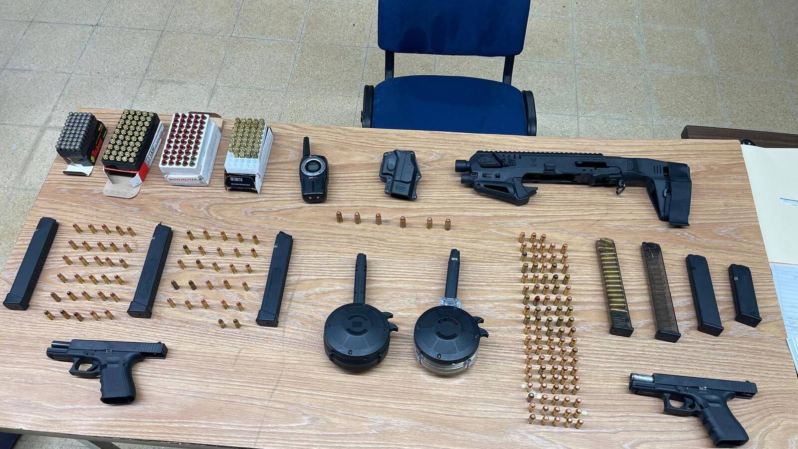 - Una pistola Glock .40 modelo 23, con aditamento para ser disparada automáticamente (Chip).
