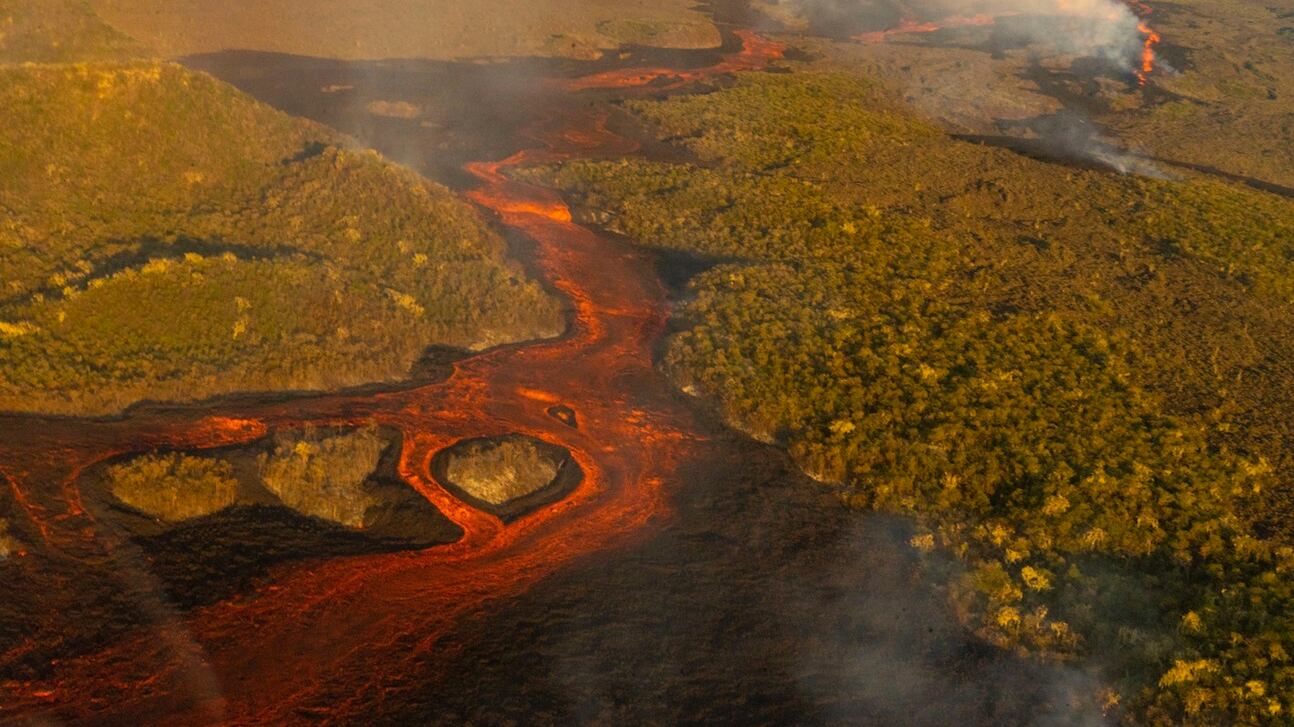 Las primeras imágenes difundidas por el Parque Nacional Galápagos y que fueron captadas por los guarda parques muestran columnas de vapor y un rojo encendido en la isla, ubicada a 1.000 kilómetros del territorio continental ecuatoriano.