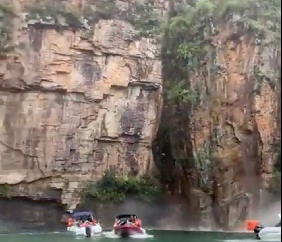 La tarde de este sábado en la región del Lago de Furnas, en la localidad de Capitólio, en el estado de Minas Gerais en Brasil, turistas grabaron el momento del desprendimiento de una gran roca que cayó sobre varias embarcaciones que se encontraban en el lugar.