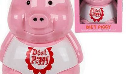Diet Piggy, es el juguete de la empresa Toys ‘R’ Us que causó gran polémica en redes sociales debido a la función de debía cumplir. Si bien muchos juguetes se crean con el objetivo de divertir a los niños, este estaba diseñado para emitir un gruñido cada vez que alguien abre el refrigerador. Esto provocó la indignación de miles de padres de familia preocupados por que se inculcara el hacer dieta a los niños, especialmente porque se sabe que los desórdenes alimenticios comienzan desde temprana edad.