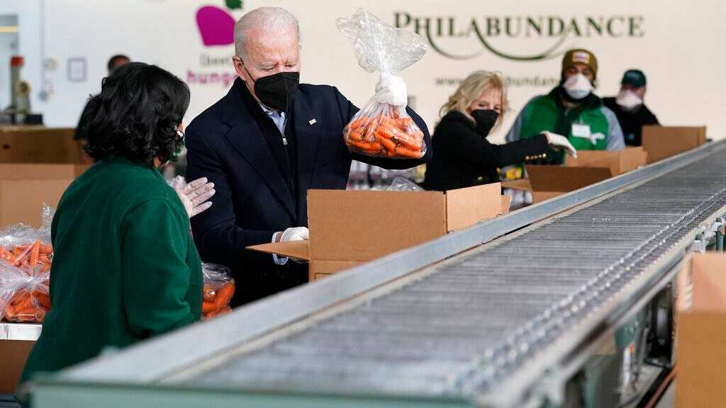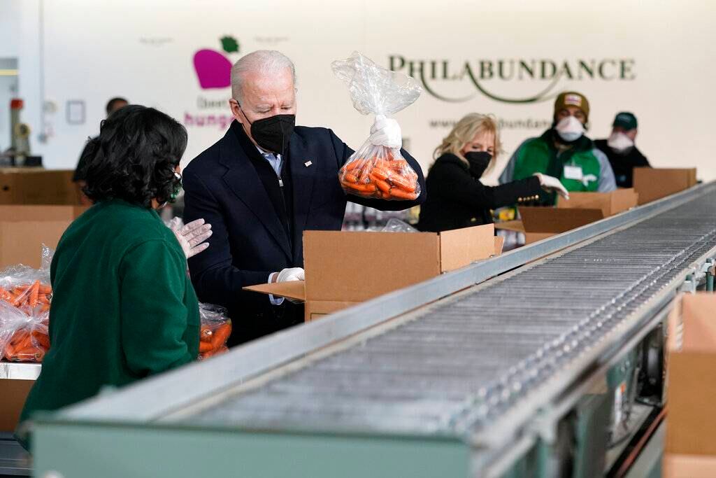 La pareja viajó una media hora desde su residencia en Wilmington, Delaware, hasta Philabundance, una organización de ayuda alimenticia en Filadelfia que atiende a unas 140.000 personas por semana en la región de Pensilvania y el sur de Nueva Jersey. Antes de dirigirse al piso del almacén donde cintas sin fin transportaban cajas de cartón llenas de alimentos donados, Biden dijo que era necesario renovar el crédito fiscal que reciben las familias por hijo.