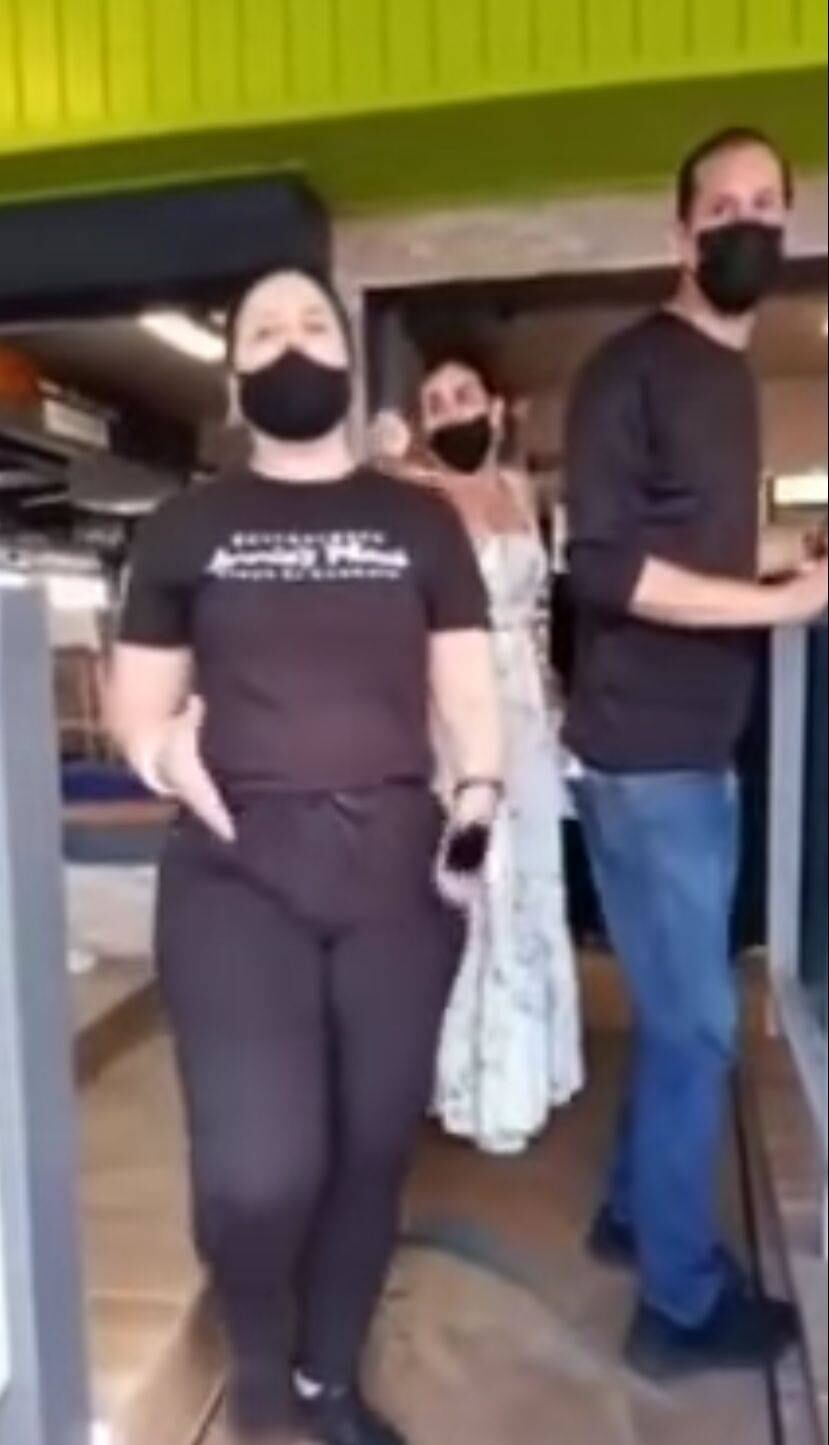 “En mi negocio se siguen las reglas establecidas por la ley. Aquí nadie entra sin mascarilla y sin tarjeta de vacunación”, expresó la propietaria del negocio, Lisantia Arroyo, en el vídeo que fue grabado el pasado 16 de diciembre de 2021.