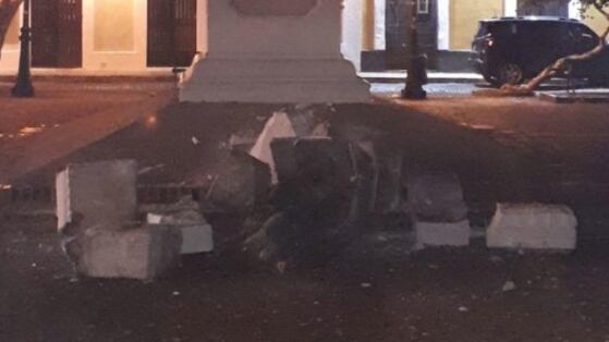 “Sí. Le hicieron daño a la estatua. La información que tengo es que derribaron la estatua en si. Se rompió en pedazos. Voy de camino”, dijo García en Radio Isla 1320am.