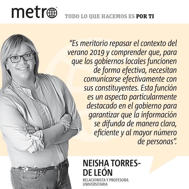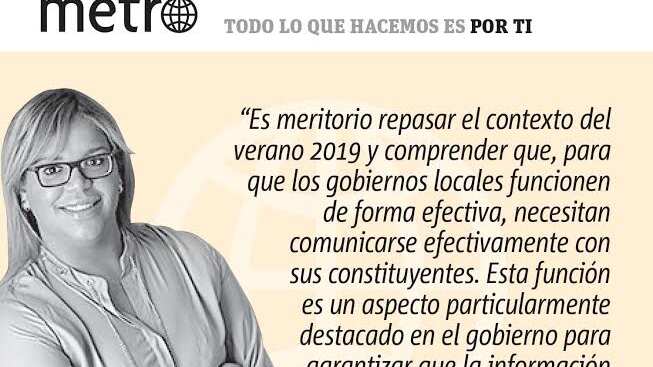 Es meritorio repasar el contexto del verano 2019 y comprender que, para que los gobiernos locales funcionen de forma efectiva, necesitan comunicarse efectivamente con sus constituyentes. Esta función es un aspecto particularmente destacado en el gobierno para garantizar que la información se difunda de manera clara, eficiente y al mayor número de personas.