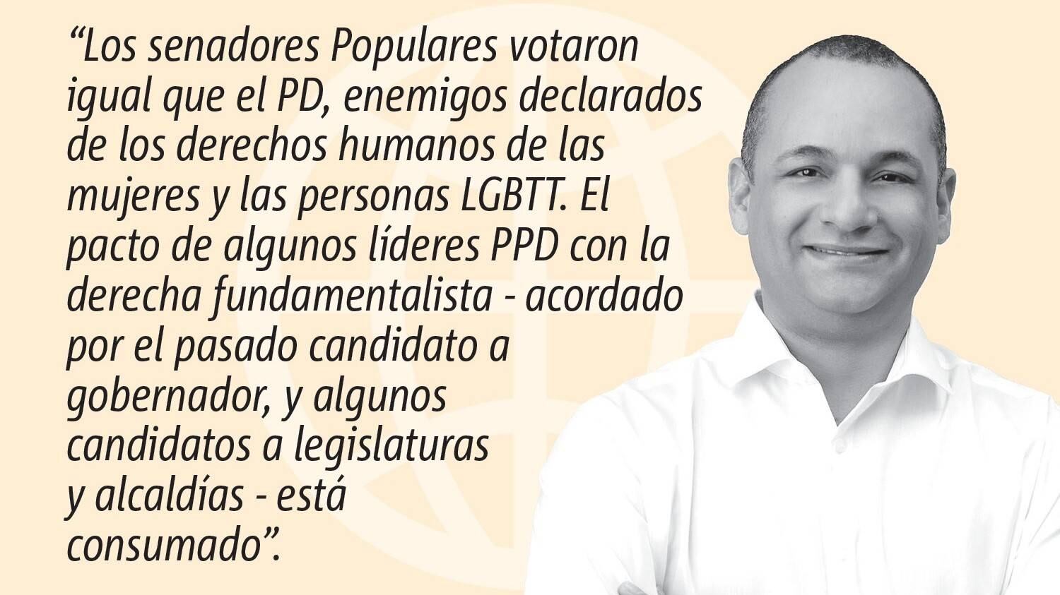 La derrota del proyecto para prohibir las terapias de conversión culminó el proceso de acercar al PPD a los retrógrados del Proyecto Dignidad (PD). Los senadores Populares votaron igual que el PD, enemigos declarados de los derechos humanos de las mujeres y las personas LGBTT. El pacto de algunos líderes PPD con la derecha fundamentalista – acordado por el pasado candidato a gobernador, y algunos candidatos a legislaturas y alcaldías – está consumado.