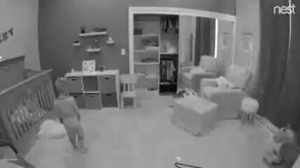 El momento quedó registrado mediante las cámaras de seguridad que los padres colocaron en la habitación.