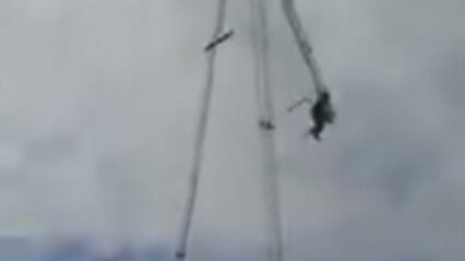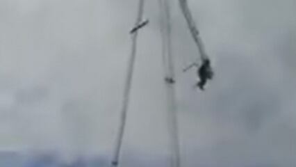De pronto la parte superior de la torre cae, sin explicación alguna. Esta parte de la torre tira de los cables de soporte, lo cual provoca que el resto de la torre caiga, provocando la muerte casi inmediata del obrero. Con información de Letra Roja