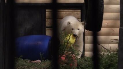 Haarchaana es la nieta del oso polar Uslada, que vive en la casa de fieras de San Petersburgo desde 1993. El gobernador de San Petersburgo, Georgi Poltavchenko, y el jefe de la República de Sakha (Yakutia), Yegor Borisov, según los informes, visitaron el zoológico después de que el oso polar fuera transferido. Video: Ruptly.