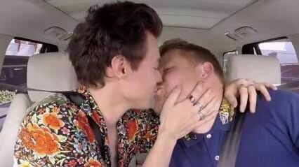 Esta vez durante el fragmento Carpool Karaoke, en el cual Styles decidió darle un beso al conductor, quien se mostró sorprendido por el acto. “No esperaba eso para Navidad”, dijo James Corden, quien ya había besado a Harry Styles durante el programa “The Late Late Show” en 2013, en donde el cantante se sentó en las piernas del comediante y lo besó. Luego del primer beso comenzaron los rumores sobre una posible bisexualidad de Harry Styles; sin embargo, siempre lo negó.