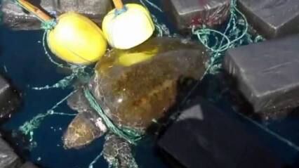 De acuerdo al servicio marítimo estadounidense, el barco Cutter Thetis halló a la tortuga durante su regreso a la base de Cayo Hueso en Florida después de una misión de patrullaje de 68 días en el Pacífico centroamericano. Según las sospechas de la Guardia Costera, este cargamento- valuado en 53 millones de dólares- habría sido tirado por la borda de una lancha de narcotraficantes durante una persecución policial. Las redes fueron divisadas por un avión militar por lo que enviaron una lancha para decomisar los paquetes y rescatar a la tortuga. El reptil tenia marcas en el cuello que mostraban que llevaba varios días atrapada. Los tripulantes obraron para cortar las cuerdas de la red sin dañar las aletas o el cuello de la tortuga.