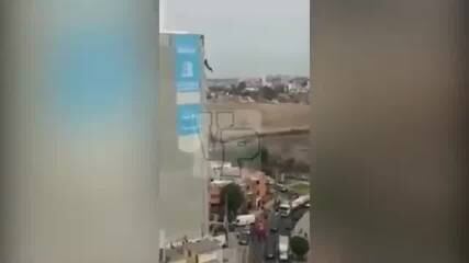 El sujeto anunció su suicidio, y los vendedores de los apartamentos llamaron a las autoridades, los rescatistas llegaron al lugar en el momento en que el hombre ya se encontraba en el borde del edificio. Los rescatistas intentaron persuadir al hombre de lanzarse, sin conseguir resultados. El hombre se lanzó pero fue atrapado por un rescatista, tras unos instantes, el hombre consiguió desprenderse del oficial y cayó en el balcón de un edificio aledaño.