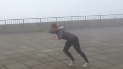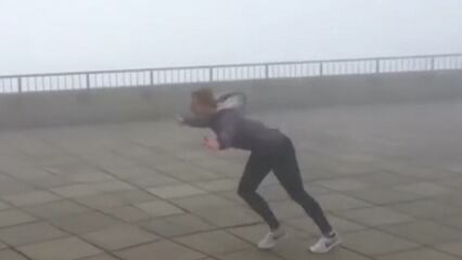 Ryan Canty y su novia condujeron la montaña antes de salir de su automóvil y grabar un video corto de ellos tratando de caminar hacia adelante y hacia atrás bajo los fuertes vientos.