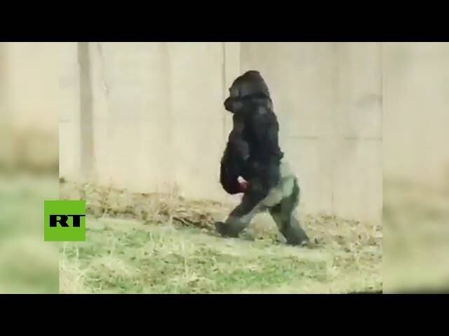 En el clip se ve cómo un gorila camina erguido como un humano para evitar ensuciarse sus extremidades superiores, informa Associated Press.
