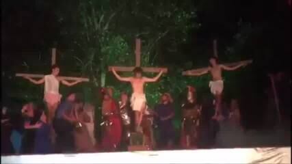 Tal como dice la biblia, Jesús recibió una lanza en el costado antes de morir, de esta forma se estaba representando la pasión de Cristo en un municipio en Brasil cuando un hombre saltó a “defender” al moribundo mesías.