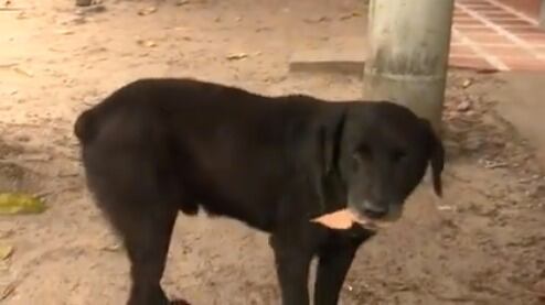 “Negro” es un can que aprendió a “comprar” galletas con las hojas de los árboles.