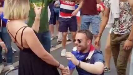 En un video que se volvió viral, el joven se hinca con todo el romanticismo de la ocasión y aunque no se nota algún anillo de por medio, se percibe que algo el dice a la mujer, pero ella sin dudarlo de inmediato le dijo que no tratando de calmar a los aficionados presentes, quienes celebraban el momento. Con la negativa de la bella chica, el joven no tuvo más remedio que levantarse y abrazarse con su novia, quien prefirió esperar otro momento si es que el afectado en turno se anima alguna otra vez a pedirle que sea su esposa.