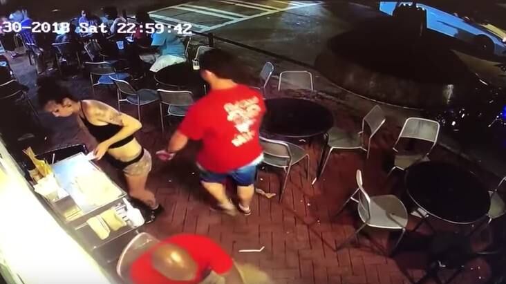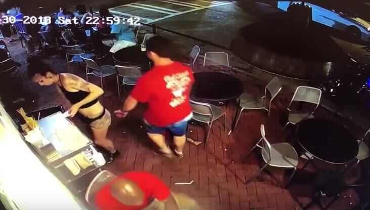 En un video de unas de las cámaras de seguridad del local, se puede ver como Emelia Holden esta dejando unos menús en una mesa cuando un hombre pasa a sus espaldas y le toca el trasero.