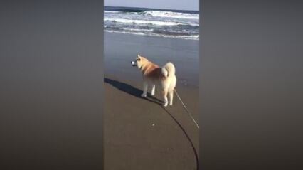 Cuando el amo de Fuji, el perro Akita, lo llevó a ver el mar por primera vez, no esperaba que Fuji estuviera un poco asustado.