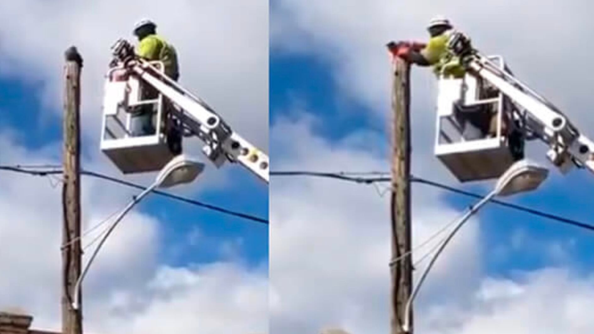 Maurice German, que trabaja en la empresa de telefonía Verizon, en Estados Unidos, se subió a la escalera telescópica de su camión para rescatar a un gato que llevaba más de doce horas en la parte más alta de un poste de alumbrado en la ciudad de Filadelfia.