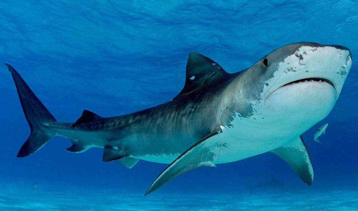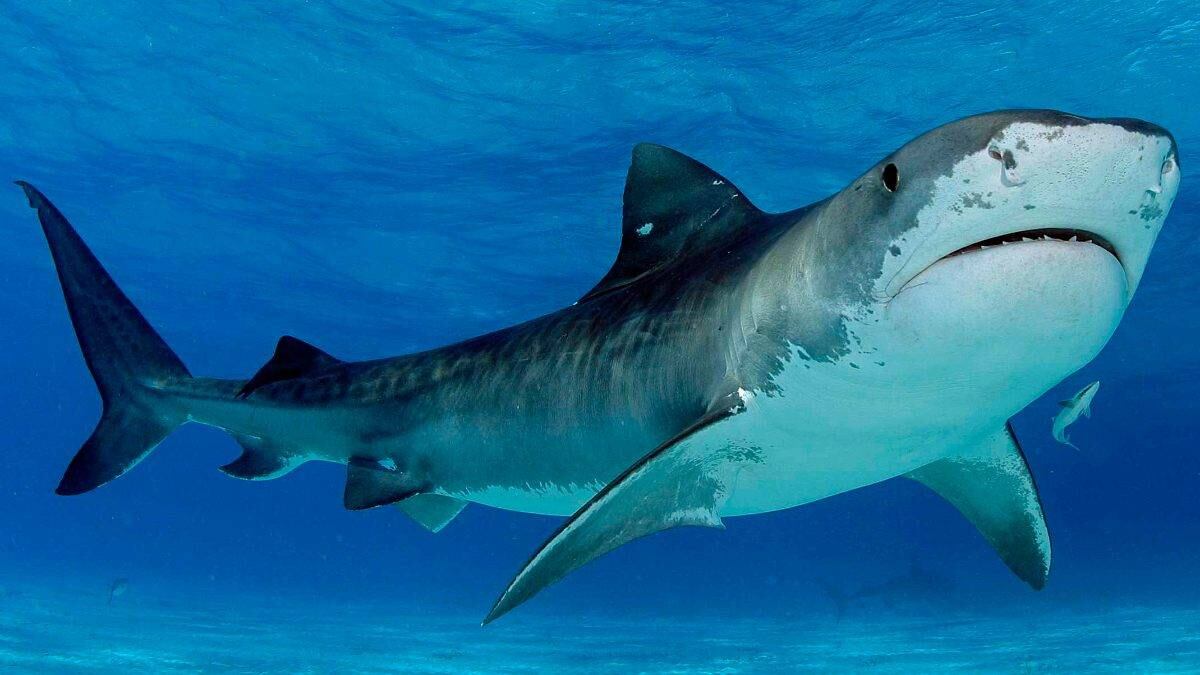 Un dron ha captado el escalofriante momento en que un tiburón tigre de arena pasa junto a un banco de peces para lanzarse en persecución de un bañista que nada ajeno a su presencia.