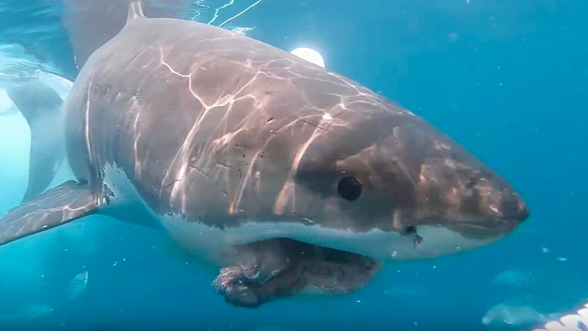 El pasado 30 de octubre un grupo de buzos decidió bajar al mar en una jaula para grabar a los tiburones. (Video) Un tiburón blanco asusta a un grupo de buzos al inpactar su jaula