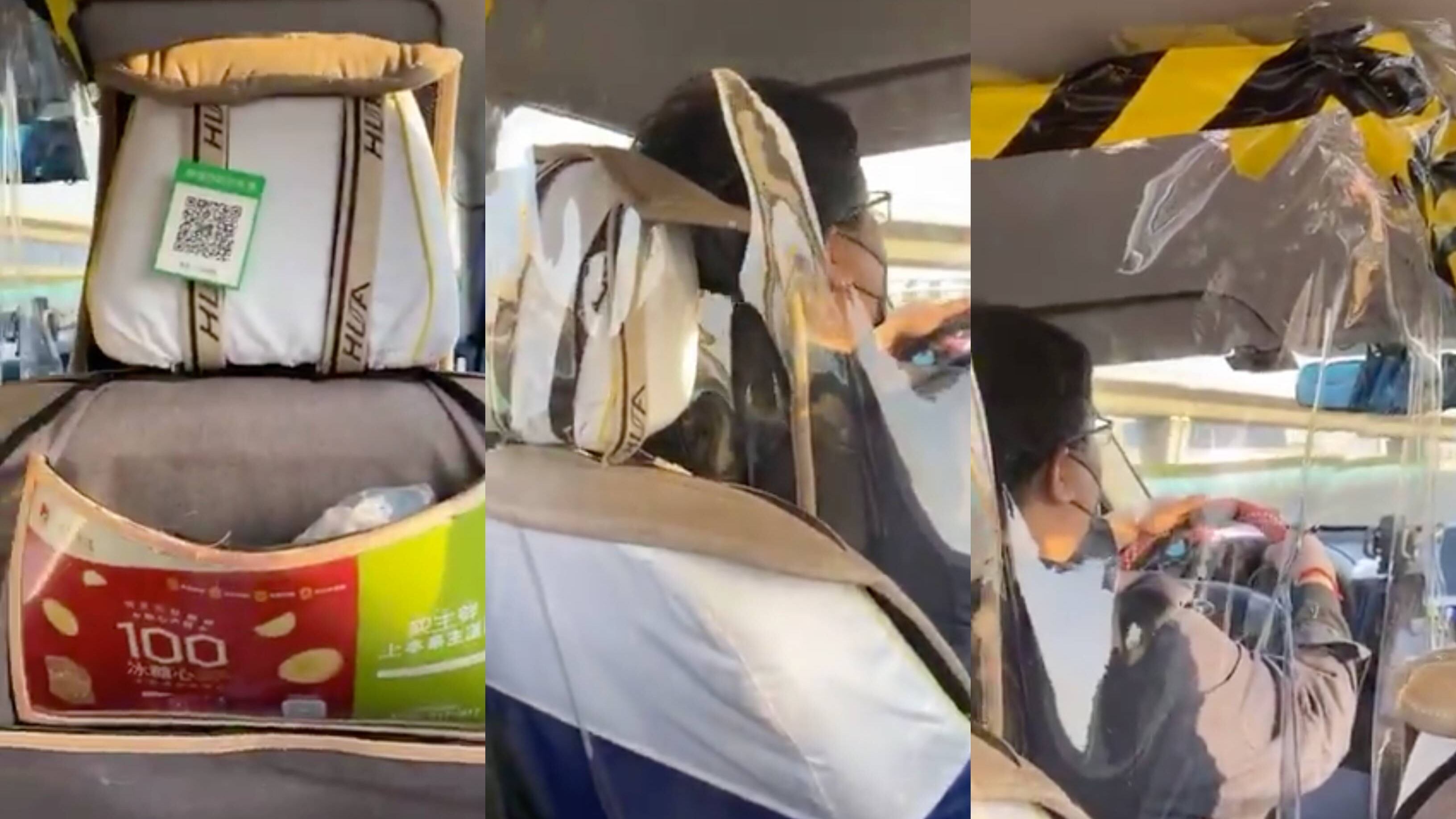 Un taxista en Pekín fue filmado el jueves conduciendo con una “burbuja” protectora de plástico alrededor de su asiento para protegerse de los clientes que teme puedan estar infectados con el coronavirus.
