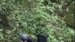 (Video) Tres mujeres se encuentran con un gran oso negro en medio del bosque