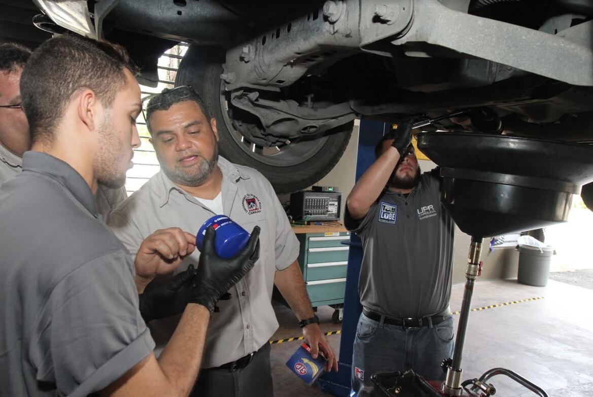 Por su parte, el director del Programa, el profesor Walbert Marcano, explicó que los estudiantes estarán bajo la supervisión de un técnico automotriz autorizado y sus profesores en todo momento. “Nuestros estudiantes van a contar con una experiencia completa, pues van a pasar por todo el proceso; desde atender a los clientes, manejar inventario, realizar cambios de aceite y filtro, y brindar otros servicios que se añadirán próximamente”, indicó Marcano, quien presidió la Junta Examinadora de Técnicos y Mecánicos Automotrices de Puerto Rico. El primer cliente fue el presidente del sistema universitario, quien realizó el corte de cinta en los actos de inauguración.
