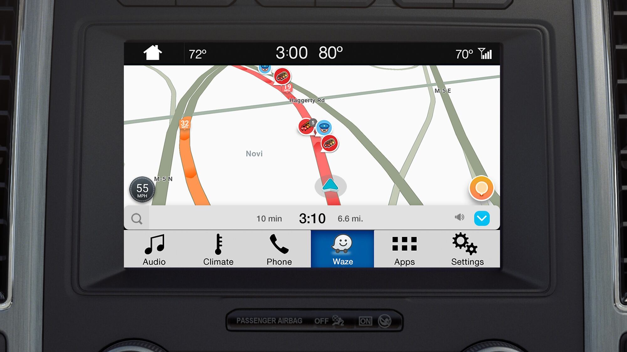 Además de la capacidad de informar cosas como el tráfico pesado, los accidentes y los precios del combustible, la integración de Waze en Ford incluye actualizaciones recientes de la aplicación, como Talk to Waze, que permite controlarla a través de comandos de voz. Las funciones también incluyen soporte de ruta para carriles de vehículos de alta ocupación opciones de navegación adicionales y tiempos de llegada más precisos.