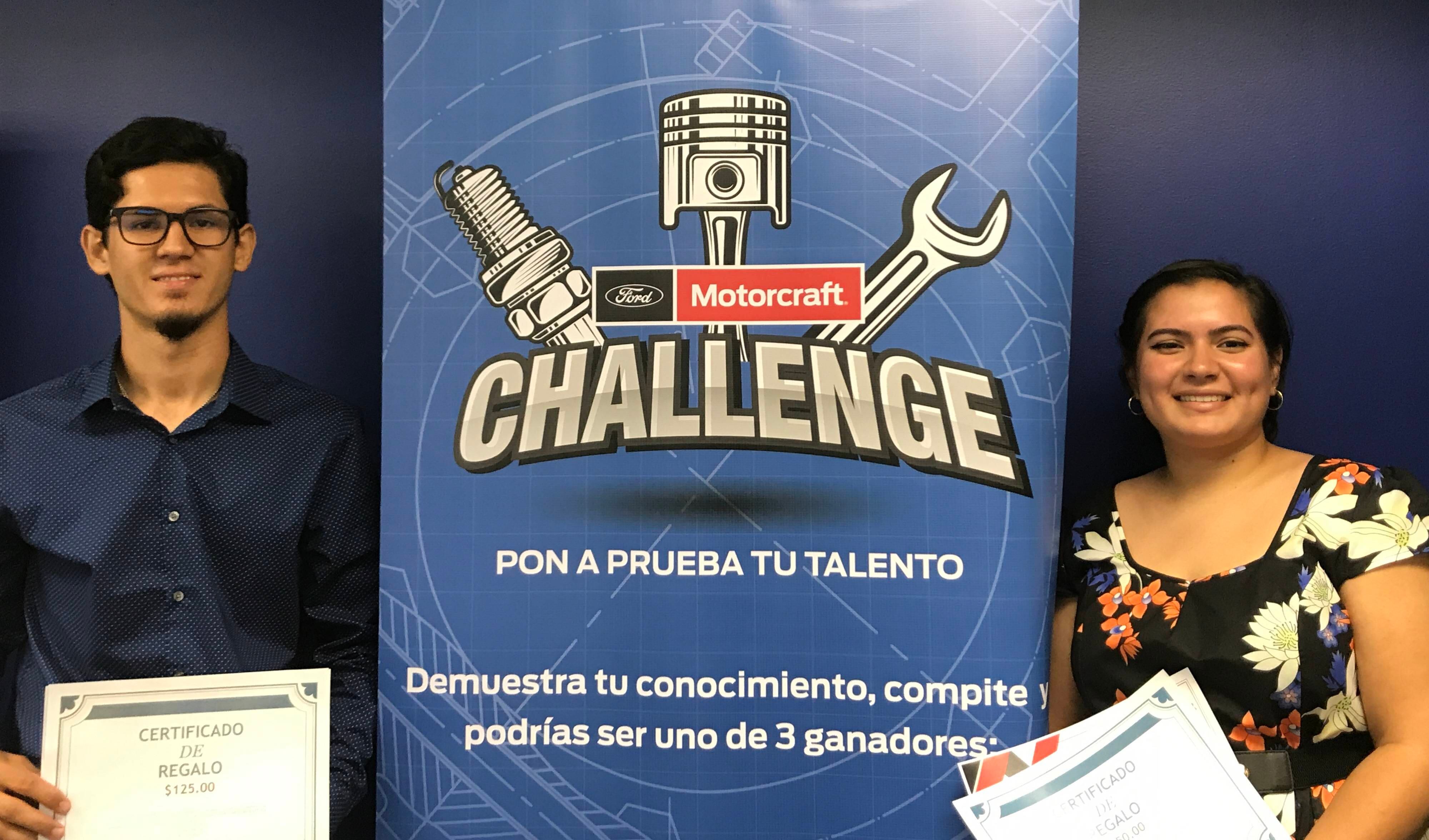 Ford Motorcraft anunció hoy que Neudily Torres y Francisco Maldonado obtuvieron el primer y segundo lugar, respectivamente, en la competencia Motorcraft Challenge, que la compañía llevó a cabo con el apoyo de sus distribuidores autorizados, Alcalde Auto Parts y The Parts House, con el objetivo contribuir al desarrollo y la educación de los estudiantes en esta rama de la industria automotriz en Puerto Rico.