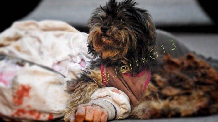 Al ser su dueño arrollado en una de las calles de la colonia Desarrollo Urbano Quetzalcóatl, esta perrita no abandonó a su amigo pese a haber quedado sin vida en el arrollo vehicular.
