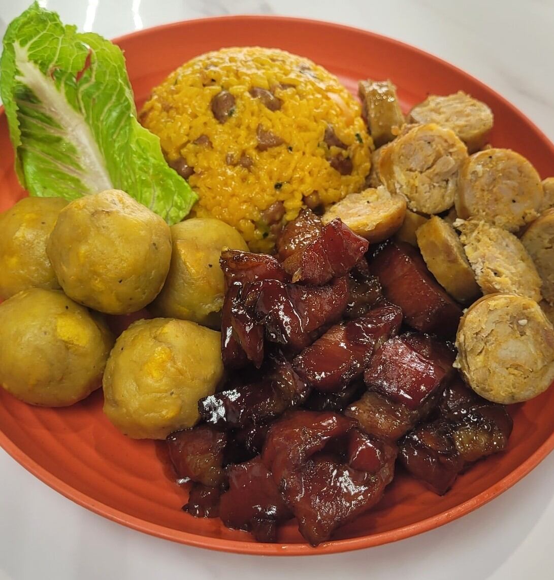 La deliciosa propuesta se complementa con acompañantes como mofongo, tostones de plátano y de pana.