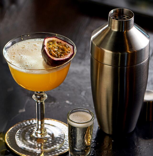 El Passionfruit Martini es una experiencia sensorial completa: el dulzor de la parcha se combina con la elegancia del vodka y las burbujas del champán para crear un final seductor y memorable.