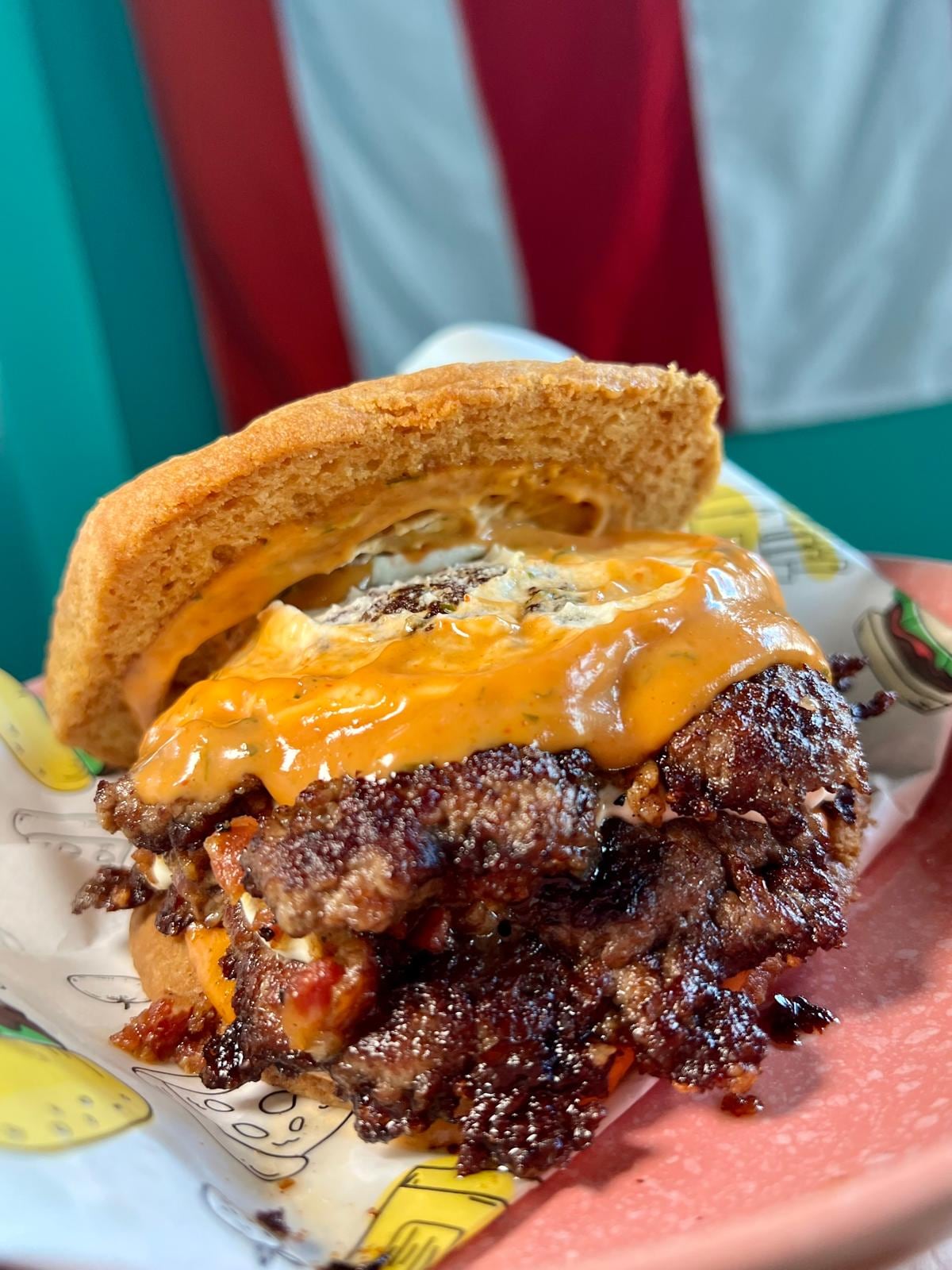 La autora de esta creación es Jitsali Rivera Torres, chef y propietaria de ÚnikuM by Jitsali, un concepto de comida callejera creativa que invita a probar lo cotidiano desde otra perspectiva. “Un día estábamos haciendo galletas aquí y se me ocurrió la idea. Dije: ¿y si metemos un hamburger dentro de una galleta, qué puede pasar?”, recordó entre risas.