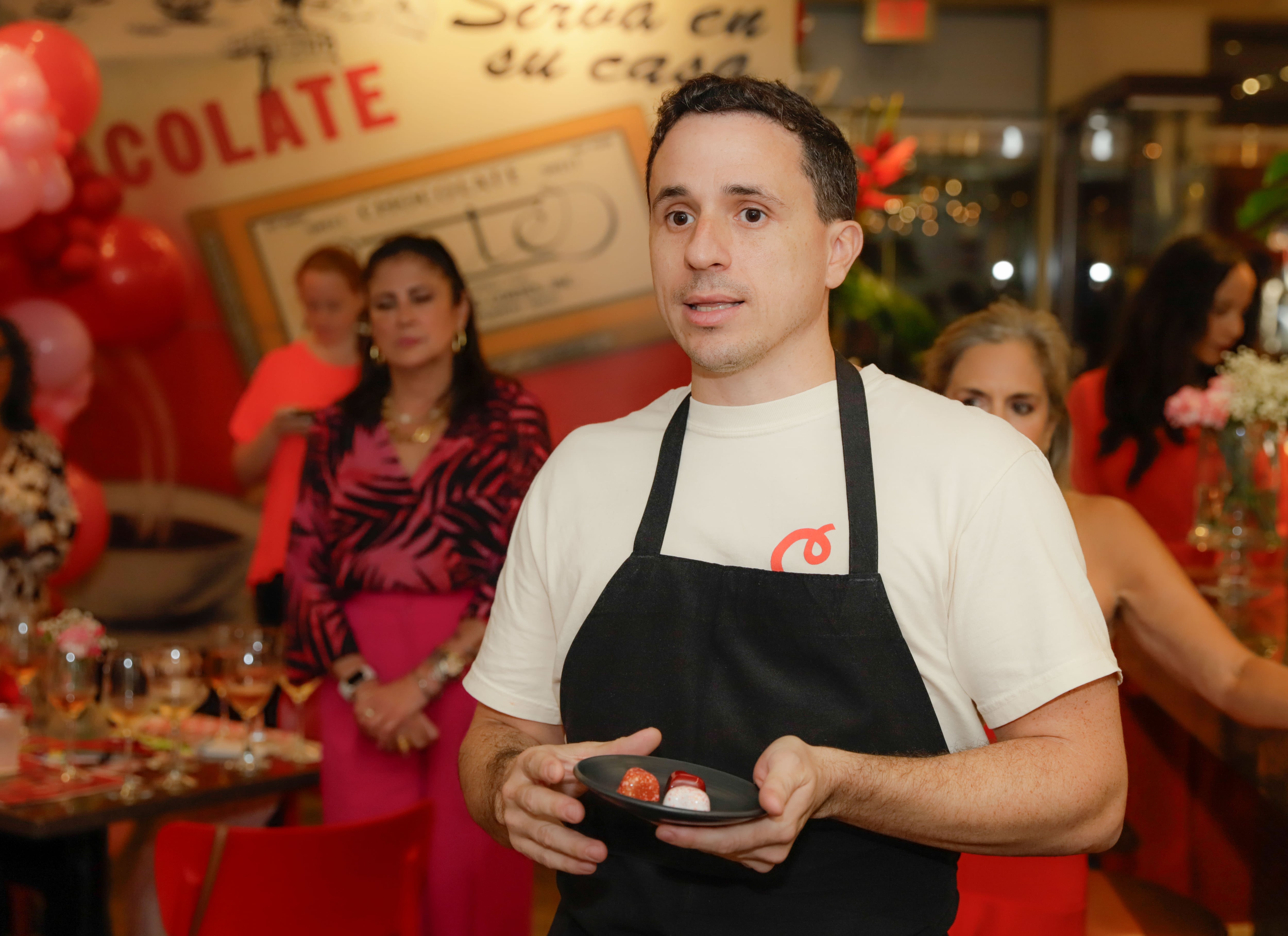 La propuesta culinaria del chef de Chocobar Cortés también formó parte de la experiencia con una selección de bocaditos dulces y salados diseñados para complementar la degustación. Como cierre, las invitadas —vestidas en tonos rojos, rosas y marrones inspirados en el chocolate— personalizaron sus propias cajas de bombones con el acompañamiento de Monse Rivera, de la papelería puertorriqueña Just B. Cuz, reconocida por sus diseños artesanales.
