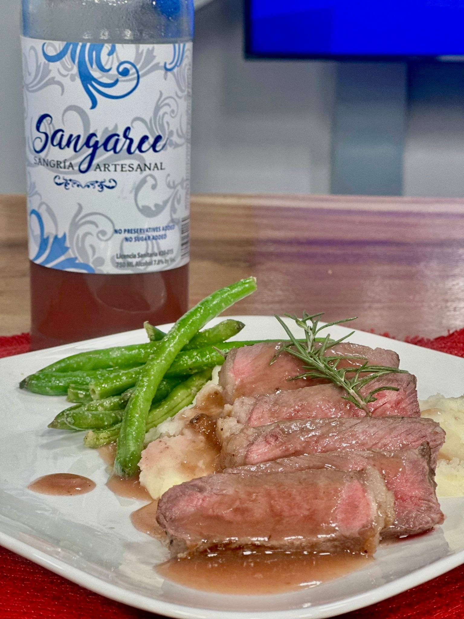 Receta de chef Mai-ling New York Steak en salsa de Sangria Sangaree
