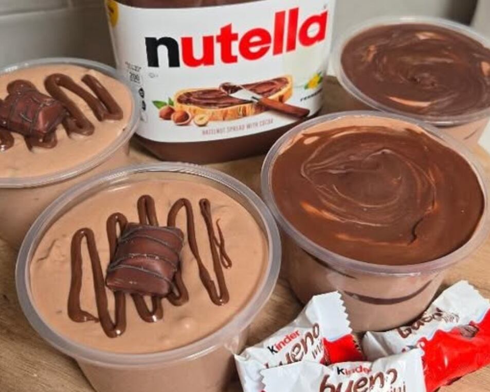 Lo mejor es que con la misma mezcla puedes preparar dos sabores: uno full Nutella y otro con Kinder Bueno. Ideal para tener en el freezer para visitas, para un antojo de noche o para servirlo en copitas con toppings y convertirlo en postre de “restaurante”.