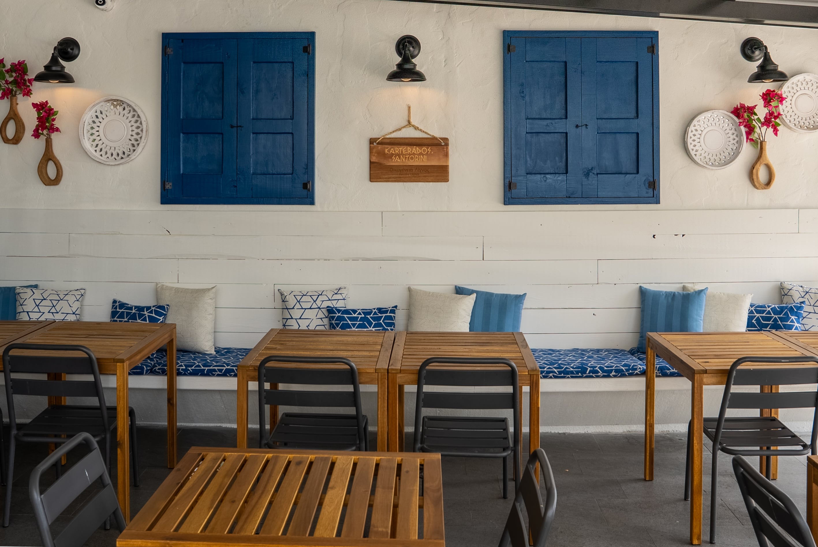 El nuevo espacio, con capacidad para aproximadamente 35 personas, fue diseñado como una réplica casi exacta de la fachada y el balcón de la casa familiar de Lignos en Karterados, Santorini. Allí, según relata, se tejieron muchos de los recuerdos que hoy inspiran la identidad culinaria del restaurante.