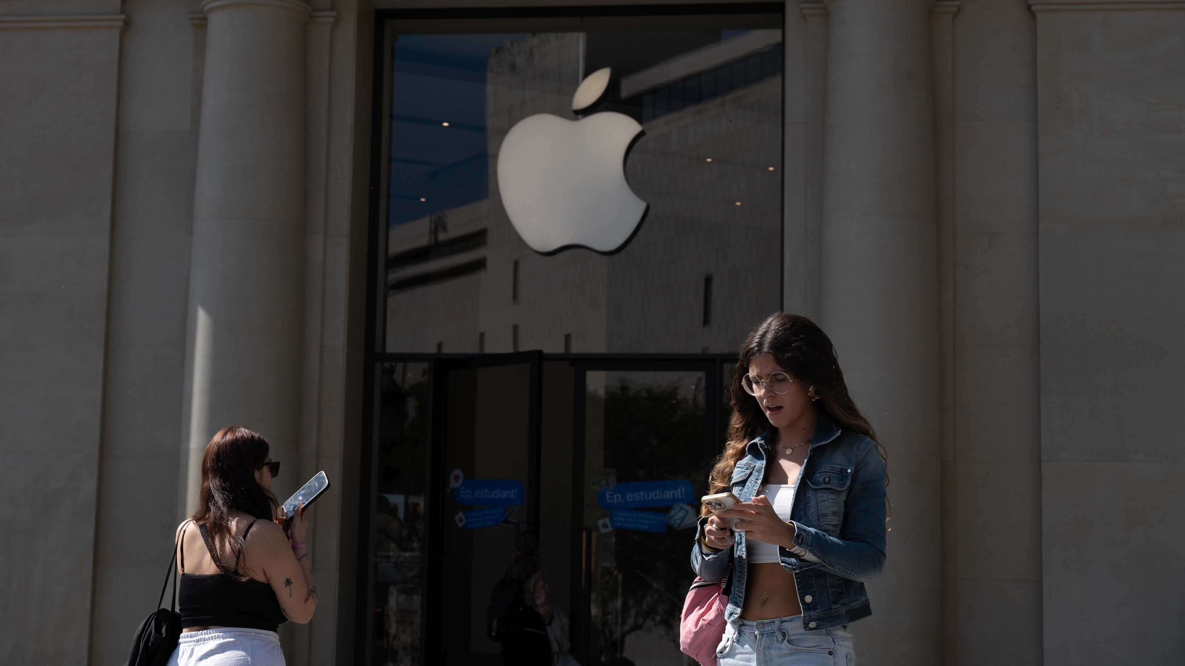 Varias personas pasan junto a una tienda de Apple, a 16 de septiembre de 2024, en Barcelona, Catalunya (España). Apple ha aumentado el precio de su servicio de reparación de baterías para los nuevos iPhone 16 Pro y 16 Pro Max, que costarán un 24 por c David Zorrakino - Europa Press (David Zorrakino - Europa Press/Europa Press)